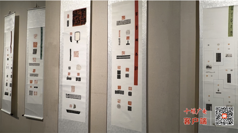 本次展览涵盖书法、绘画、篆刻、摄影四大类别,共展出作品100余幅。作品题材丰富,艺术水准较高,兼具武当文化底蕴与时代审美气息。其中,书面篆刻作品以《道德经》为创作核心,用笔墨模拟传统篆刻章法韵味,涵盖姓名印、闲章等类型,笔墨勾勒间传递 “道法自然”等经典哲思,尽显武当文化与传统篆刻的融合之美;武当武术名家陆国柱先生创作的《龙》书法作品尤为引人注目,该作品长7.7米、宽0.54米,不仅以苍劲雄浑的笔触书写“龙”字,更融汇了古今中外名人篆刻画像,气势恢宏、意蕴深远,生动诠释了武当文化刚柔并济的哲学内涵。
