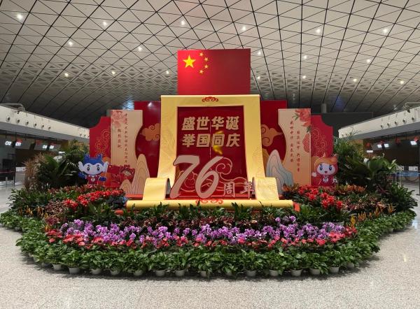 金秋送爽,丹桂飘香。为热烈庆祝中华人民共和国成立76周年,喜迎中秋传统佳节,营造喜庆祥和、文明和谐的节日氛围,长春机场对1号、2号航站楼进行装扮,以一场别开生面的视觉盛宴深情献礼祖国,为旅客献上诚挚的节日祝福。